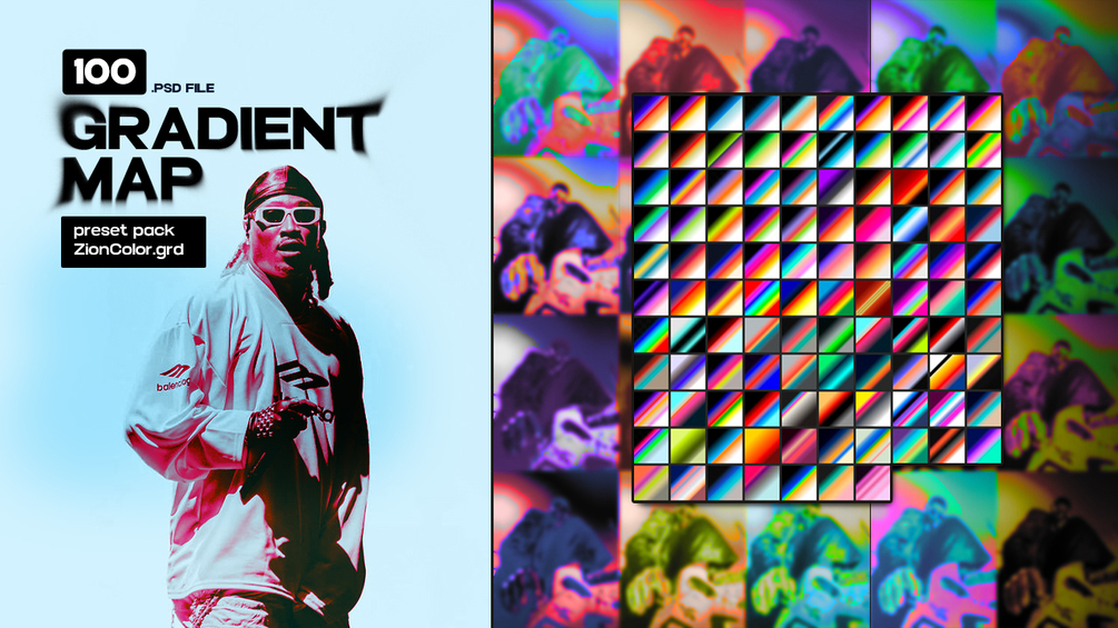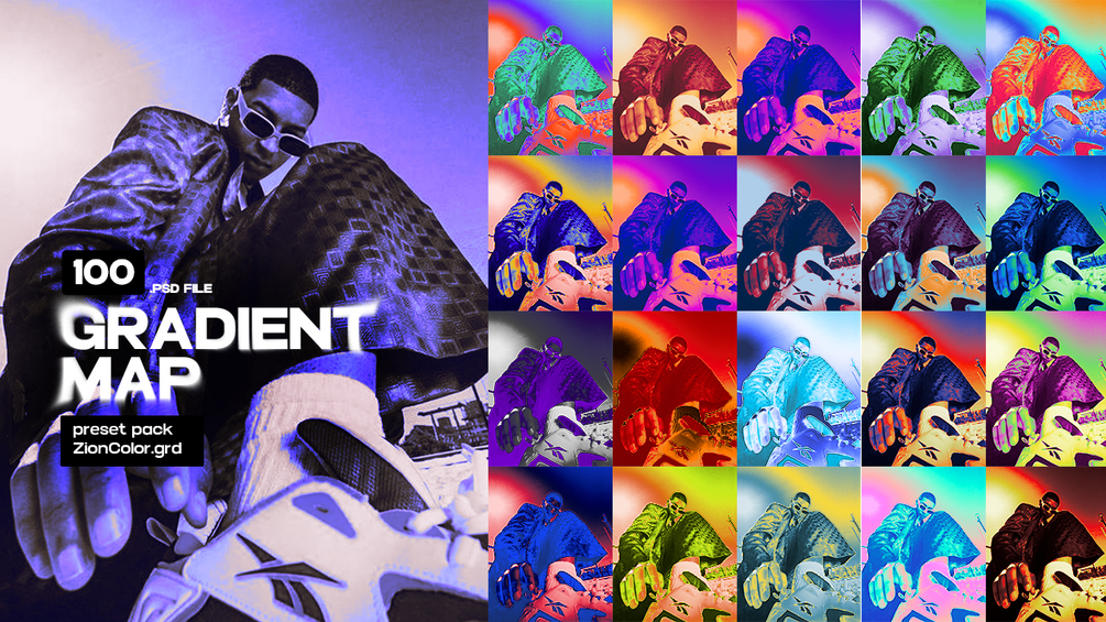- 100 Gradient Maps: Carefully curated gradients to suit any design style, from subtle and elegant tones to bold and creative combinations.